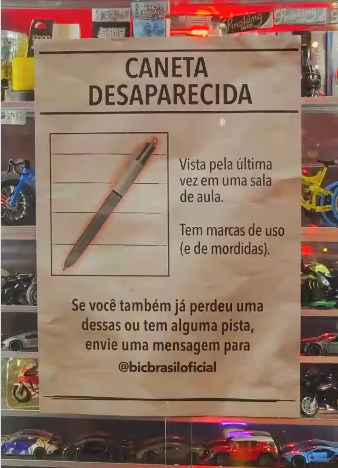 Para Rodrigo Iasi, diretor de Marketing da BIC Brasil e Argentina, a intenção é provocar a curiosidade das pessoas e criar uma conversa cultural em torno da marca “O desaparecimento das canetas é o ponto de partida para uma jornada de mistério que será desvendada ao longo da campanha”, conclui.
