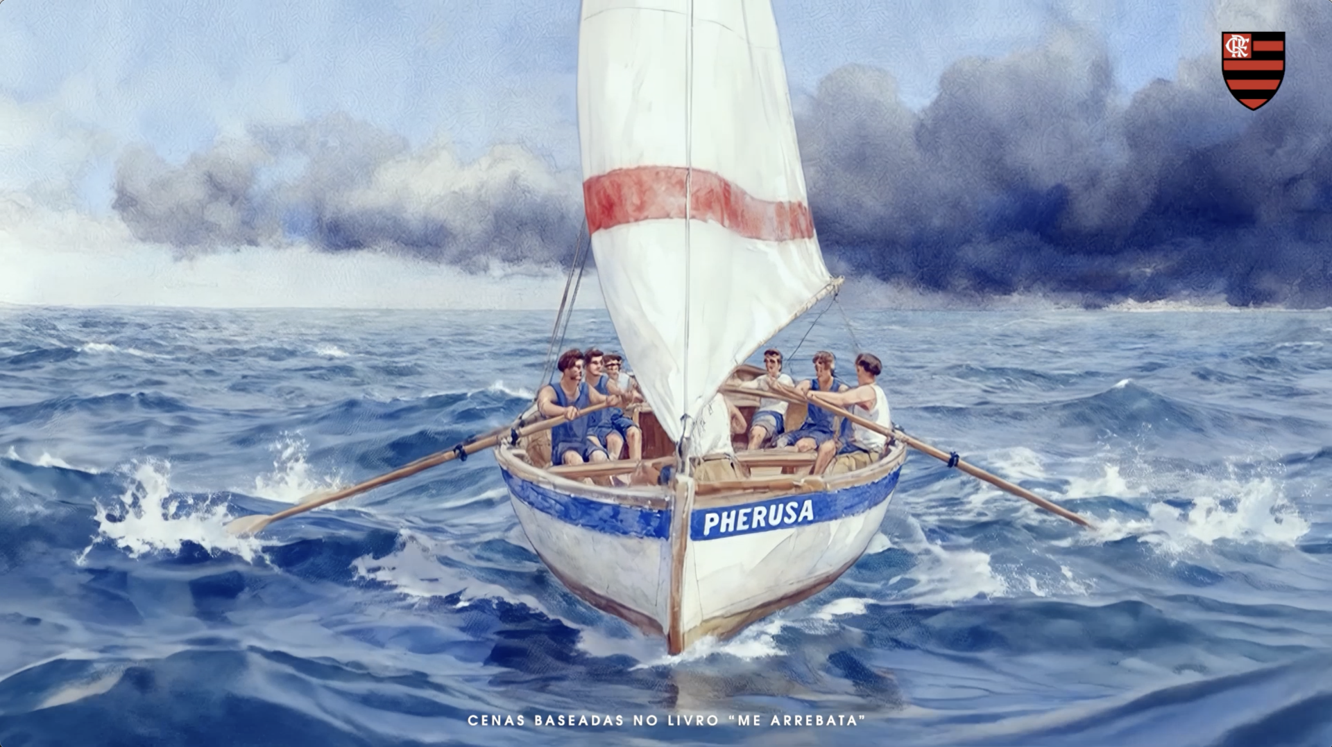 Baseada no livro ‘Me Arrebata’, de Maurício Neves de Jesus e Renato Dalmasso, a campanha conta a história do barco Pherusa – primeira embarcação do Clube, que chegou a naufragar, mas foi recuperada na raça pelos remadores que fundaram o Flamengo.