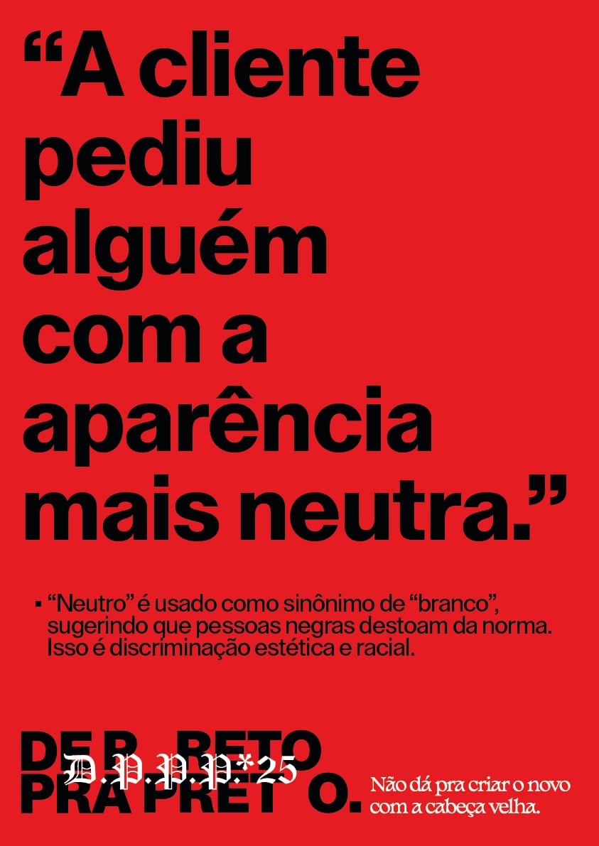 O ‘Portfolio Night’, principal evento, com mais de 40 jovens negros inscritos, acontecerá amanhã, dia 14 de novembro, às 20:00 horas, na Nova de Brasília, em uma ação na qual profissionais da agência e convidados avaliarão portfólios desses jovens e oferecerão feedbacks e mentorias práticas para apoiar a entrada desses talentos no mercado publicitário.