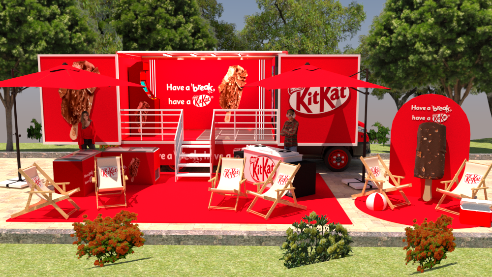 Em pontos estratégicos de parada, o truck se transforma em um espaço de diversão, com música e DJ ao vivo, além de spot instagramável e a linha completa de KitKat.