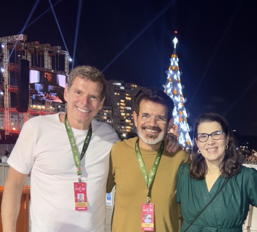 Na Enseada de Botafogo, a primeira edição do projeto ‘Natal do Rio’ transformou um dos cenários mais emblemáticos da cidade em espaço de celebração, cultura e encontros. A árvore flutuante de 80 metros de altura – foto acima -, iluminada por mais de 2,3 milhões de luzes de LED, foi idealizada e teve a direção criativa de Abel Gomes – na foto abaixo com Alexandre Accioly e a secretária de Cultura Danielle Barros – da SRCOM e realização da Accioly Participações. Além do palco principal, o espaço conta com a Vila Gastronômica, que reúne diversas operações gastronômicas em formato de food trucks, com curadoria de Ana e Pedro Vidal, além de ativações de marcas parceiras e experiências pensadas para todas as idades. Inaugurada no dia 30 de novembro, vai ficar até 6 de janeiro, com programação cultural gratuita distribuída ao longo dos finais de semana, incluindo apresentações musicais, espetáculos de luzes, balé de águas e atividades voltadas para famílias e crianças, com expectativa de que o projeto receba mais de 650 mil visitantes até o fim da temporada.