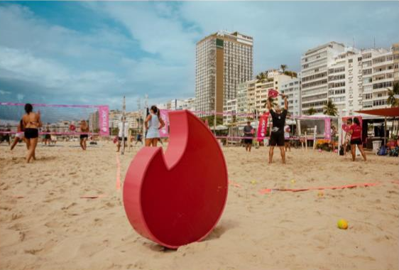 Enquanto isso, o Tinder transformou um dos quiosques de Copacabana em ponto oficial de encontro, criando uma experiência proprietária que estimula conexões presenciais a partir de matches feitos no aplicativo. Os encontros em duplas aconteciam em um espaço ambientado especialmente para a campanha, fazendo do quiosque uma extensão da jornada do aplicativo de relacionamento e reforçando o posicionamento da plataforma como facilitadora de conexões reais fora das telas.