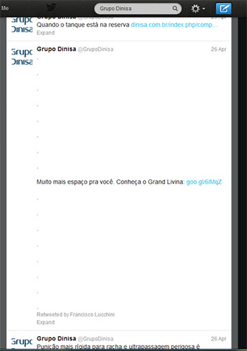 A PS10 criou um tweet para o Grupo Dinisa -- uma concessionária Nissan -- que no timeline da empresa ocupou um espaço enormemente maior que os 140 caracteres tradicionais daquela ferramenta.