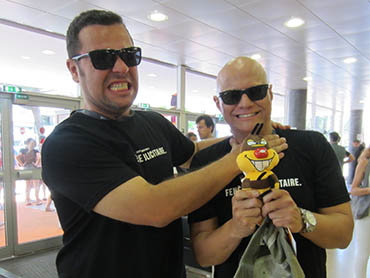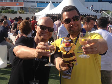 Como os demais veículos do trade se recusam a fotografar os nossos correspondentes, Seidl e Accioly mesmos se autofotografam ou pedem para quem estiver passando que faça o registro das suas imagens, para a vergonha das respectivas mulheres, Rita e Renata, que não puderam ir a Cannes tomar conta dos dois.