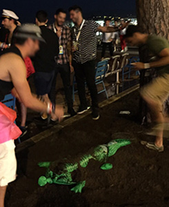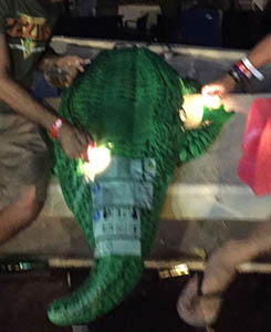 O nível da zoeira no hotel mais chique de Cannes? Ontem teve gente chegando lá com bóia de jacaré. E aí que o Jacaré explodiu e morreu. E foi cremado.