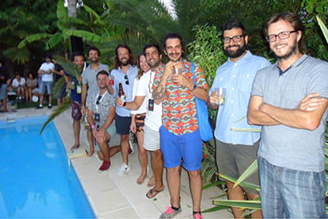 Resultado, a festança teve que rolar de tarde. Virou uma pool party para não virar uma festa no xilindró. Acompanhe como foi, daqui a pouco, assim que o Accioly acordar da ressaca e postar as fotos que ele tirou. Isso se a câmera não caiu na piscina.