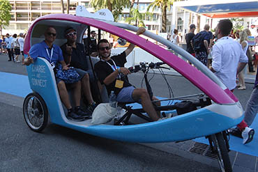 Foi o seguinte: tínhamos que ir pra uma festa e já estávamos meio atrasados. Na porta do Palais, tem uns triciclos moderninhos, com motorista e tal. É tipo um Côco Taxi com acesso a internet, tablet, lugar pra carregar celular, todo coloridinho.
